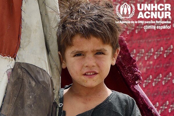 Un padre afgano desplazado y tres de sus hijos en su hogar temporal en Kariz-e-Meer, a las afueras de Kabul. La familia huyó del norte de Kunduz en mayo de 2021 después de que su casa fuera destruida por los combates.  © ACNUR/Andrew McConnell