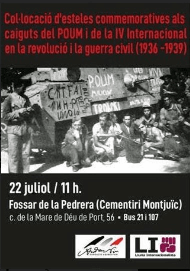22 de juliol: Col·locació d'esteles commemoratives als caiguts del POUM i de la IV Internacional en la revolució i la guerra civil (1936-1939)